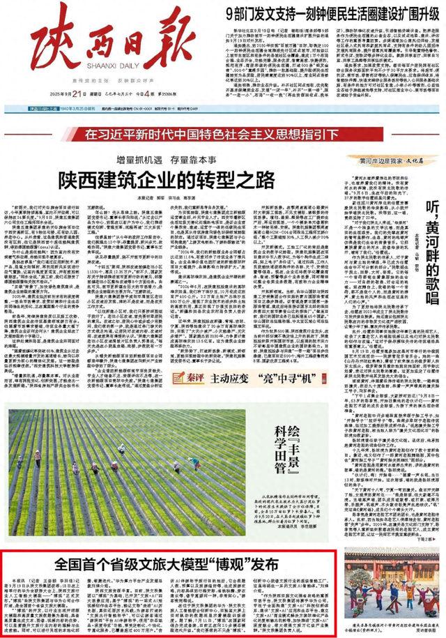 记者9月19日从陕文投集团获悉:18日在上海举行的华为全联接大会上,陕西文旅行业人工智能大模型——“博观”正式发布。“博观”由陕文投集团与华为公司合作打造,是全国首个省级文旅大模型。