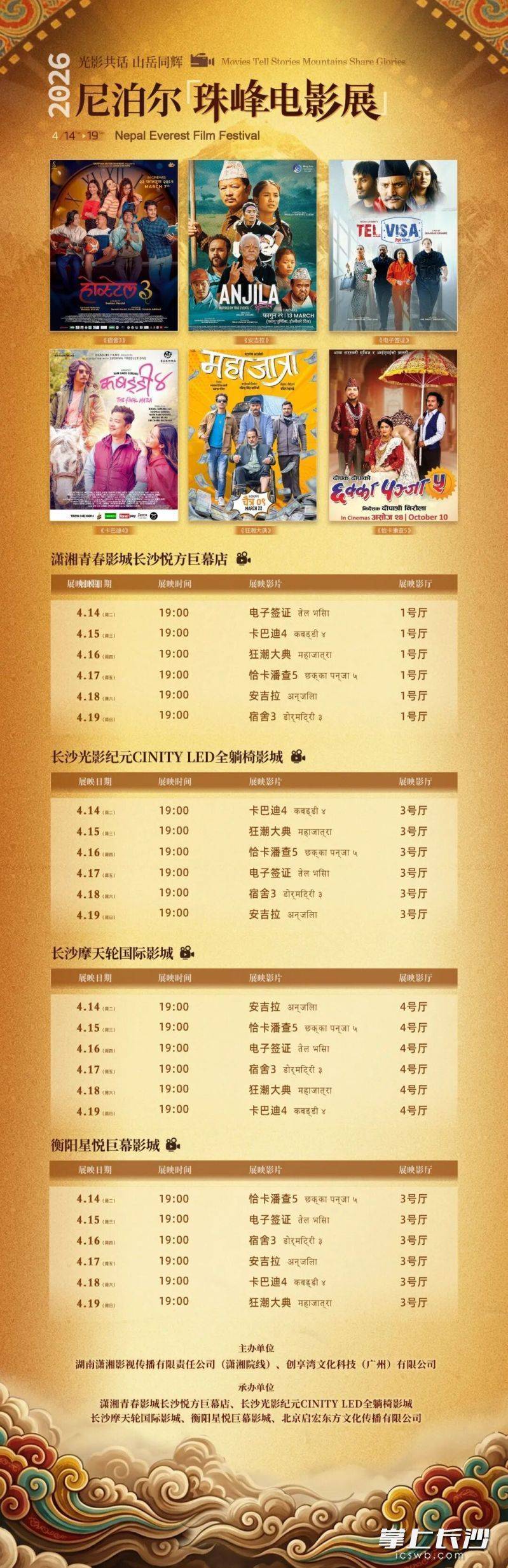 长沙晚报掌上长沙4月13日讯(全媒体记者 宁莎鸥)4月14日至19日,2026年尼泊尔“珠峰电影展”将在长沙集中展映6部尼泊尔佳片,有兴趣的影迷请关注。